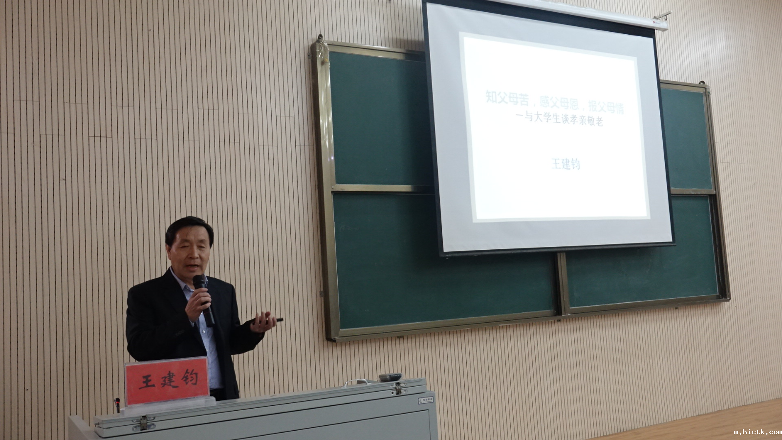 王老师以《知父母苦 感父母情 报父母恩——与大学生谈孝亲敬老》为题,深入阐释了儒家之孝的来源和含义,分析了当今时代需要孝的现状,他指出我国已经进入老龄化社会,越来越多的老年人需要孝,传统文化教育的缺失让我们意识到孝文化要从娃娃抓起,从家庭抓起,从学校抓起。他强调孝敬父母要从爱护身体做起,孝敬父母要建立在“敬”的基础上,孝敬父母要立身行道让父母为荣。