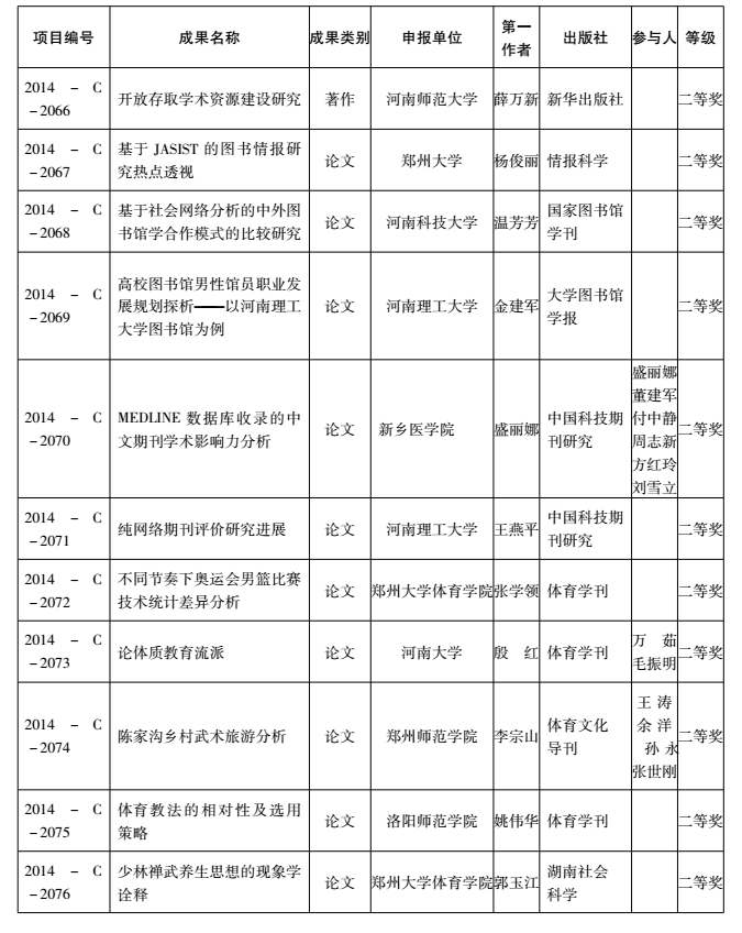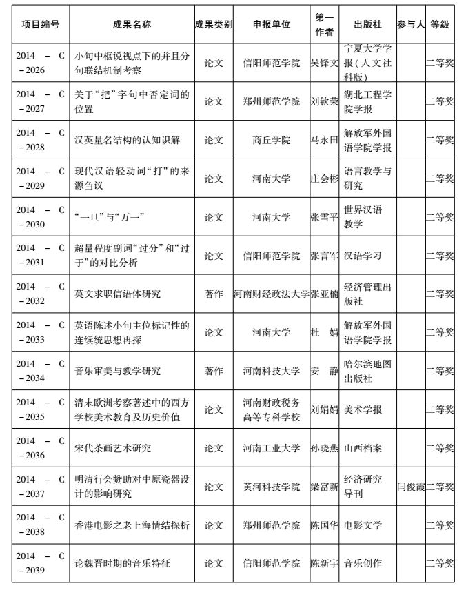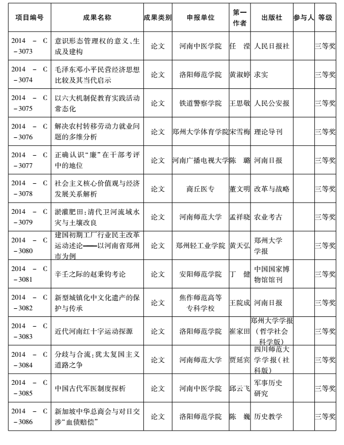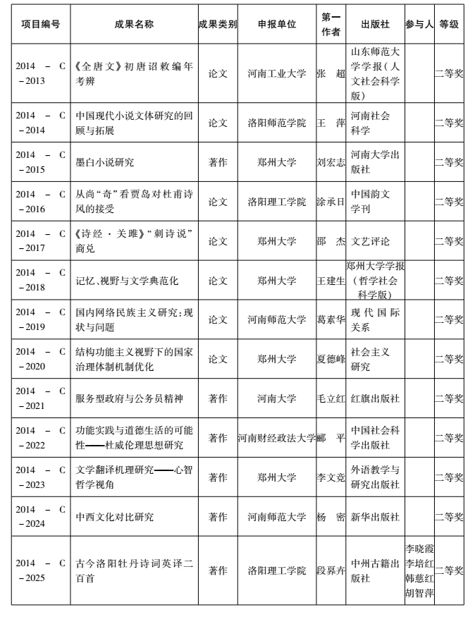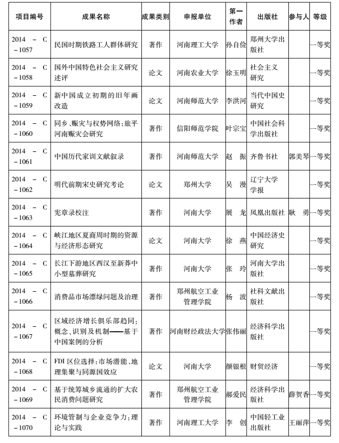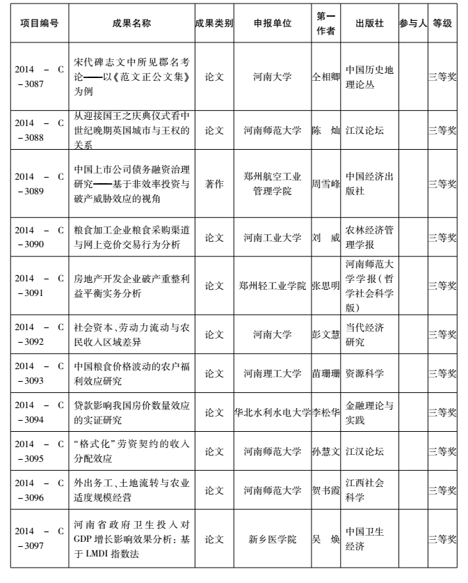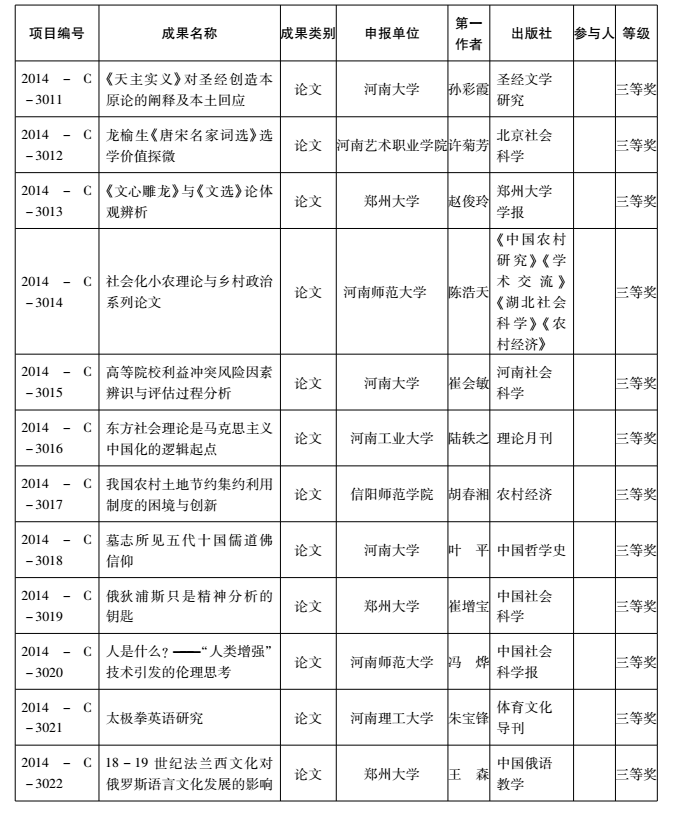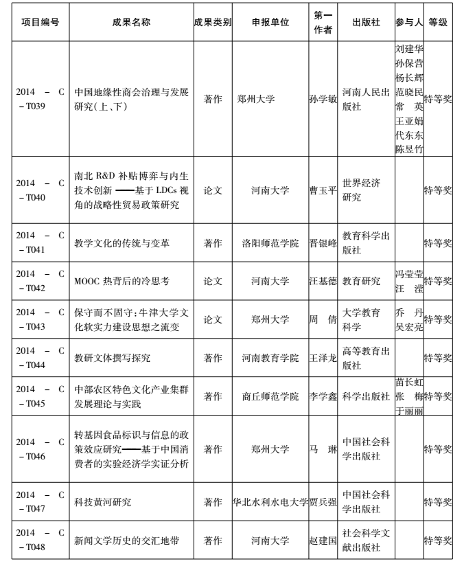 2014年度河南省教育厅人文社会科学研究成果奖获奖名单