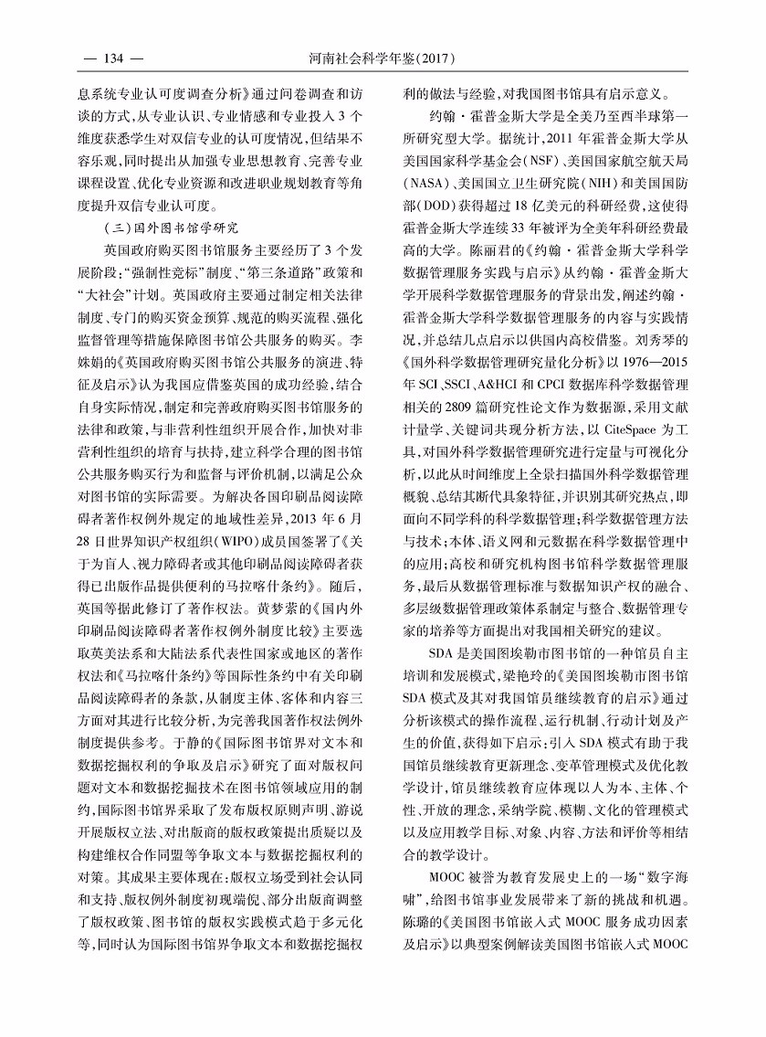 2016年度河南省图书馆·情报与文献学研究综述